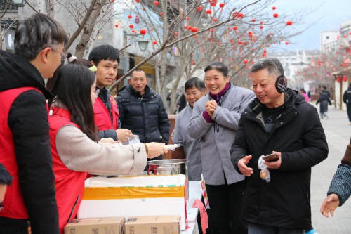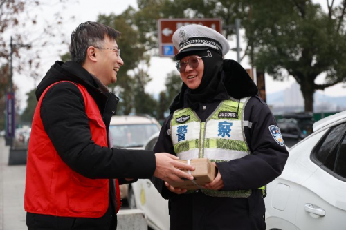“阿婆,這是我們自己煮的茶葉蛋,您嘗嘗!”“你們大冬天的還在外工作,太冷了,這個暖手寶送給您!”“阿公,過年了,吃年糕年年高!”為了讓戶外勞動者感受到關(guān)愛和年味,志愿者們走上街頭,將茶葉蛋、年糕、暖手寶等慰問物資和新春祝福直接送到戶外勞動者、外來務(wù)工者手中,讓他們感受到溫暖和祝福。