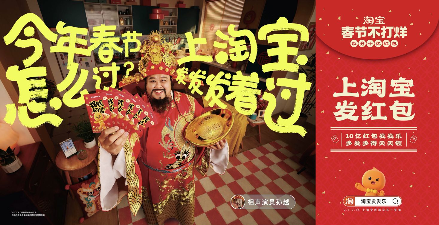 淘寶邀請(qǐng)相聲演員孫越、頭部主播李佳琦、歌手林依輪等明星主播,及東方甄選、椰樹(shù)男團(tuán)等人氣直播間共同發(fā)聲,圍繞“淘寶式過(guò)年”的幾大場(chǎng)景,詮釋了“萬(wàn)能的淘寶”。一起上淘寶,發(fā)紅包發(fā)著過(guò)、買年貨逛著過(guò)、買年味吃著過(guò)、看直播鬧著過(guò)、訂旅行躺著過(guò)、買電影票笑著過(guò)大年!