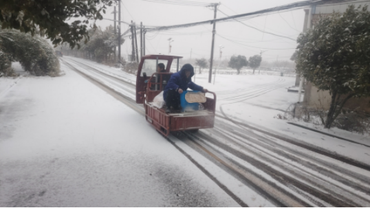 圖為江夏煙草駐村工作隊(duì)員開(kāi)展清理積雪、撒鹽除冰行動(dòng)