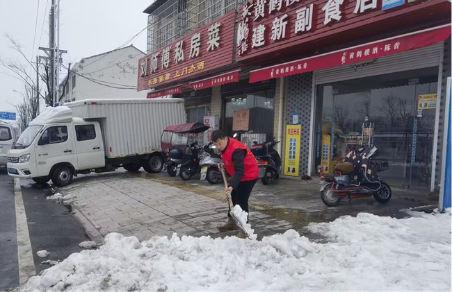 “門(mén)前的積雪有十多厘米深,路面都結(jié)冰了,無(wú)論是前來(lái)辦事的客戶(hù)還是過(guò)路群眾,一定都會(huì)很不方便的。我們大家一起去把門(mén)前的積雪、殘枝清理一下吧?!痹诠芾硭T(mén)口,有的揮舞鐵鍬,鏟冰除雪;有的手拿掃帚,清掃路面,個(gè)個(gè)不畏嚴(yán)寒,爭(zhēng)先恐后、迎雪而上。經(jīng)過(guò)一個(gè)多小時(shí)的努力,大家終于在厚厚的積雪中成功開(kāi)辟出一條“安全通道”。