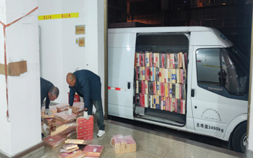 為確保零售戶準時收到訂購的卷煙,該局對接點員工爭分奪秒進行卷煙裝車以及配送工作,甚至主動放棄吃飯、午休時間,只為第一時間讓零售戶收到卷煙。