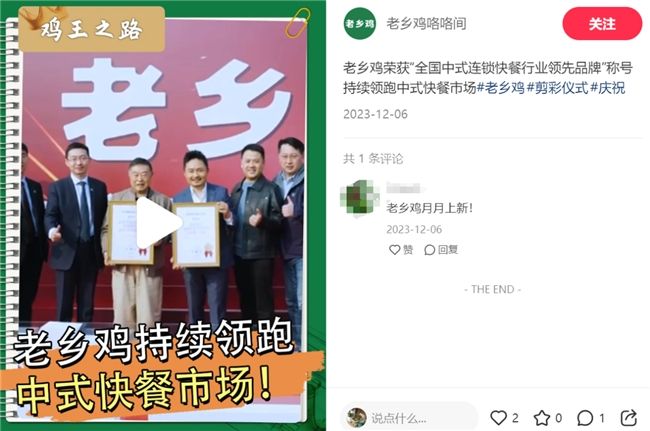 2023年,老鄉(xiāng)雞榮獲《全國中式連鎖快餐行業(yè)第一品牌》《2022及2023H1全球中式連鎖餐飲雞湯類餐品銷量第一》《全球中式連鎖餐飲雞湯類餐品連續(xù)3年銷量第一》三項(xiàng)殊榮,再次展示了他們在快餐行業(yè)中的出色表現(xiàn)和美譽(yù)度。