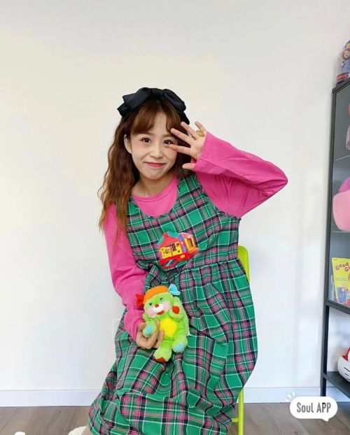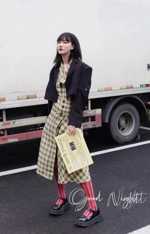 Souler@蘇啊sua的穿著偏向于復古風和cityboy風格。黃綠色格子裙搭配上紅色條紋襪,各自明艷卻又不互相排斥。如果你問她這么特別的穿搭是如何構思的,運用到了哪些潮流美學?Souler@蘇啊sua 會告訴你“多穿多嘗試,舒適度就是答案啦。”