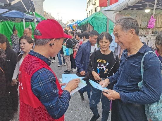 圖為蘭溪市煙草專賣局“香溢”志愿者向群眾發(fā)放反詐宣傳冊(cè)