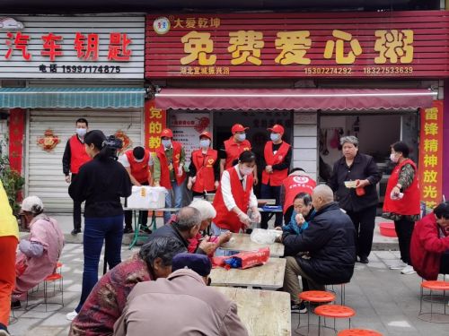 圖為黨員干部為群眾分發(fā)免費(fèi)愛(ài)心粥