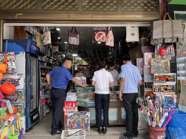 圖為市場管理員聯(lián)合其他單位開展校園周邊檢查。上官康/攝