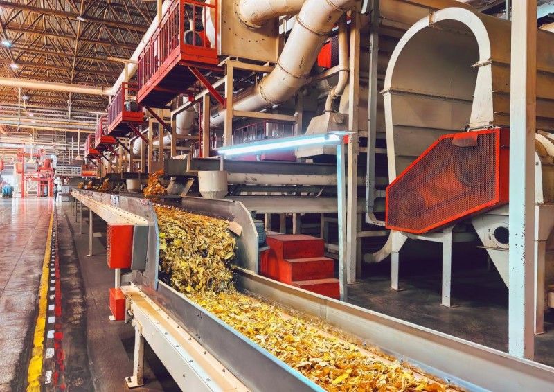 在生產(chǎn)加工車間內(nèi),工人們正有序忙碌著,時刻緊盯各工段設(shè)備運轉(zhuǎn)情況,設(shè)備馬力全開,機聲隆隆,煙葉隨著加溫加濕,葉梗分離,片煙復(fù)烤,預(yù)壓打包,一箱箱成品陸續(xù)下線入庫……