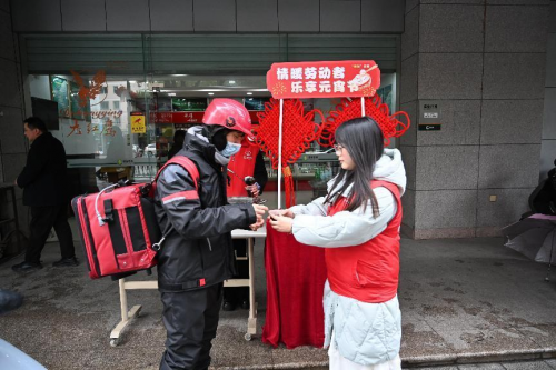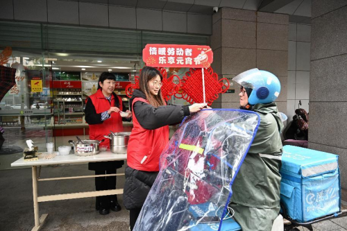 為持續(xù)擦亮“香溢”志愿服務(wù)品牌,寧??h煙草專賣局(分公司)開展“情暖勞動(dòng)者,樂享元宵節(jié)”活動(dòng),志愿者們守候在“香溢紅色驛站”,用暖身暖心的湯圓與姜茶,給奮斗在一線崗位的環(huán)衛(wèi)工人、外賣小哥等戶外勞動(dòng)者送上愛心與節(jié)日祝福。(作者:陳澤凱)