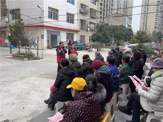 圖為黨員在社區(qū)內(nèi)開(kāi)展屋場(chǎng)會(huì)進(jìn)行普法宣傳