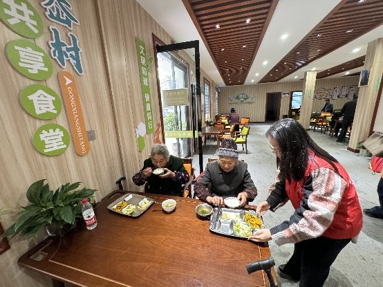 “奶奶,您坐著,我去幫您打菜?!敝驹刚咝×帜弥鴦偞蚝玫娜艘粶踅o了王奶奶,王奶奶笑著夸她“小姑娘,辛苦你了。”這是象山煙草的“香溢”志愿者走進(jìn)湯岙村居家養(yǎng)老共享食堂,為老人們打菜、端菜,攙扶老人,幫助維持現(xiàn)場(chǎng)秩序。在志愿者的引導(dǎo)下,老人們?cè)趦?yōu)先窗口前排隊(duì)打餐,有的自帶餐盒打包帶走,有的則選擇就地堂食。香溢幫扶行動(dòng)讓“空巢”“獨(dú)居”的老人在家門口就“食”有所依,感受到了溫暖。