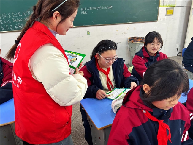 圖為志愿者向?qū)W生介紹校園欺凌的種類
