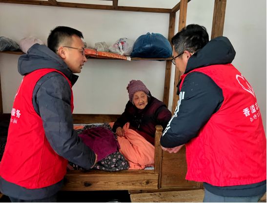 “奶奶,最近天氣冷,您要注意保暖,多穿點(diǎn)……”志愿者老李囑托到。