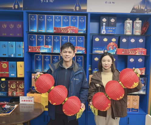 (圖為春節(jié)期間梅梅和小彧在店鋪內(nèi)喜迎佳節(jié))
