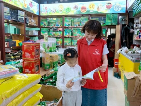 圖為志愿者與零售戶子女共讀繪本 孫紫葳/攝