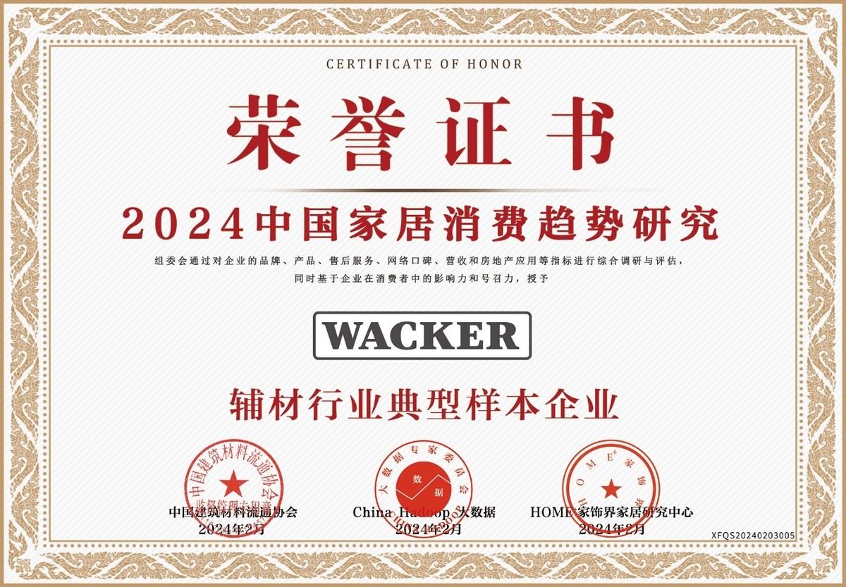 2月29日,備受關注的“2024中國家居消費趨勢研究暨行業(yè)典型樣本企業(yè)發(fā)布”成果發(fā)布,瓦克密封膠憑借近年來的出色表現(xiàn)及優(yōu)異的消費者口碑再次榮獲“輔材行業(yè)高質量發(fā)展品牌”“消費者喜愛的廚衛(wèi)防霉品牌”“消費者喜愛的美容美縫品牌”“消費者喜愛的密封膠品牌” 4項榮譽。同時,瓦克中國被2024中國家居消費趨勢研究組委會授予“輔材行業(yè)典型樣本企業(yè)”榮譽。