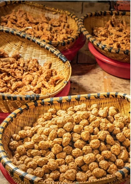 這些年少時家人一起忙活的場景,在當時的我看來多少是有些怨氣的,又麻煩又累,年年吃年年做,雖然美味,然而終究還是慢慢習以為常,直至覺得平凡普通,不以為念。如今二十多年已經(jīng)過去了,母親早已逝去,因為工作忙碌,過年所需的美食也多是直接購買,已經(jīng)很少做這些煎炸蒸煮的美食了。然而隨著年齡的增長,這些忙碌的場景每到過年總是被反復憶起,歷久彌新。現(xiàn)在各色美食琳瑯滿目、供應充足,然而每到過年,總覺得缺了點什么,缺了什么呢?是了,缺了一家人忙忙碌碌的幸福和圓滿周全的相伴,我終于懂得了母親的執(zhí)著,力所能及的制作美食是她愛家人最直接、最樸素的方式,心里想著這些圓子、手上做著這些圓子,眼前看著一家人團團圓圓在一起,還有什么比這些更能讓人滿足呢?
