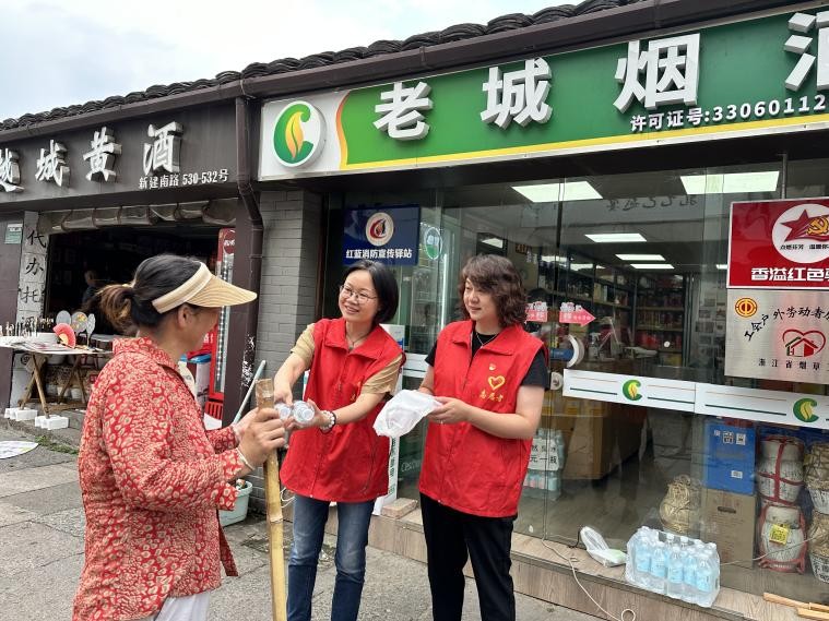 圖為“香溢”志愿者在開展“夏日送清涼”活動(dòng)。