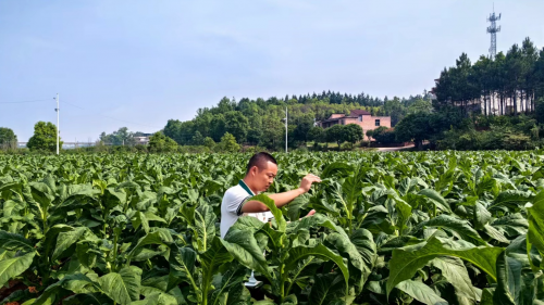 (煙葉技術(shù)員查看煙葉長勢)
