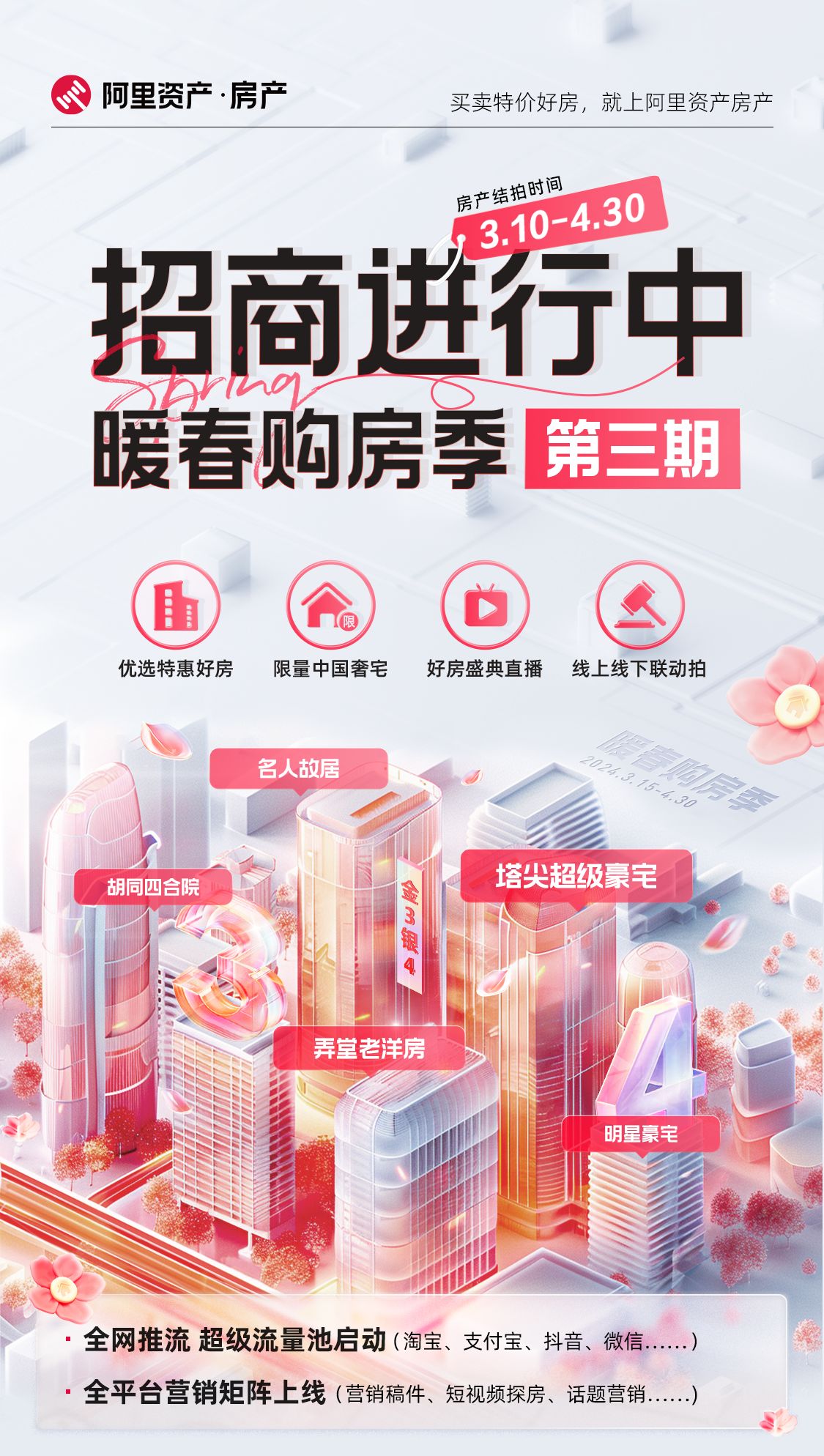 在此行情下,阿里資產(chǎn)“暖春購(gòu)房季”火熱開(kāi)啟,面向全國(guó)房產(chǎn)商家招商。據(jù)悉,將有200套阿里資產(chǎn)優(yōu)選好房席位,勁爆開(kāi)春,品類(lèi)包含稀缺豪宅、專(zhuān)屬特價(jià)住宅、投資旺鋪、國(guó)資好房;還有阿里資產(chǎn)中國(guó)奢宅,僅限9個(gè)名額。這些品類(lèi)備受廣大投資者好評(píng),自帶流量,在以往的購(gòu)房活動(dòng)中均實(shí)現(xiàn)高溢價(jià)成交。感興趣的房產(chǎn)商家抓緊報(bào)名,先到先得。