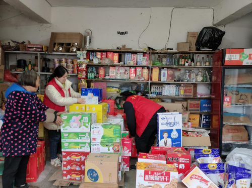 圖為志愿者幫助整理店面