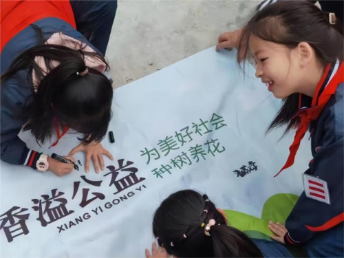 圖為孩子們參加香溢公益“春暖三月學(xué)雷鋒 植樹奮進(jìn)踐初心”簽名活動(dòng)。