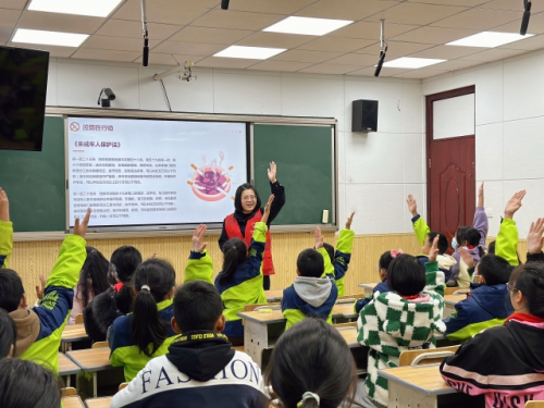 “同學(xué)們,通過剛剛的討論,我們已經(jīng)知道了什么是低碳節(jié)能、為什么要減少使用塑料袋、為什么要對(duì)垃圾進(jìn)行分類,大家說的都非常好,給了我很大的啟發(fā)。接下來我們來討論一下在日常生活中我們?cè)趺醋霾拍鼙Wo(hù)環(huán)境,哪位同學(xué)愿意先來說一說?”在太平小學(xué)的綠色生活主題課堂上,該局志愿者宋止清正在跟孩子們面對(duì)面交流,引導(dǎo)孩子們獨(dú)立思考、勇敢表達(dá)。