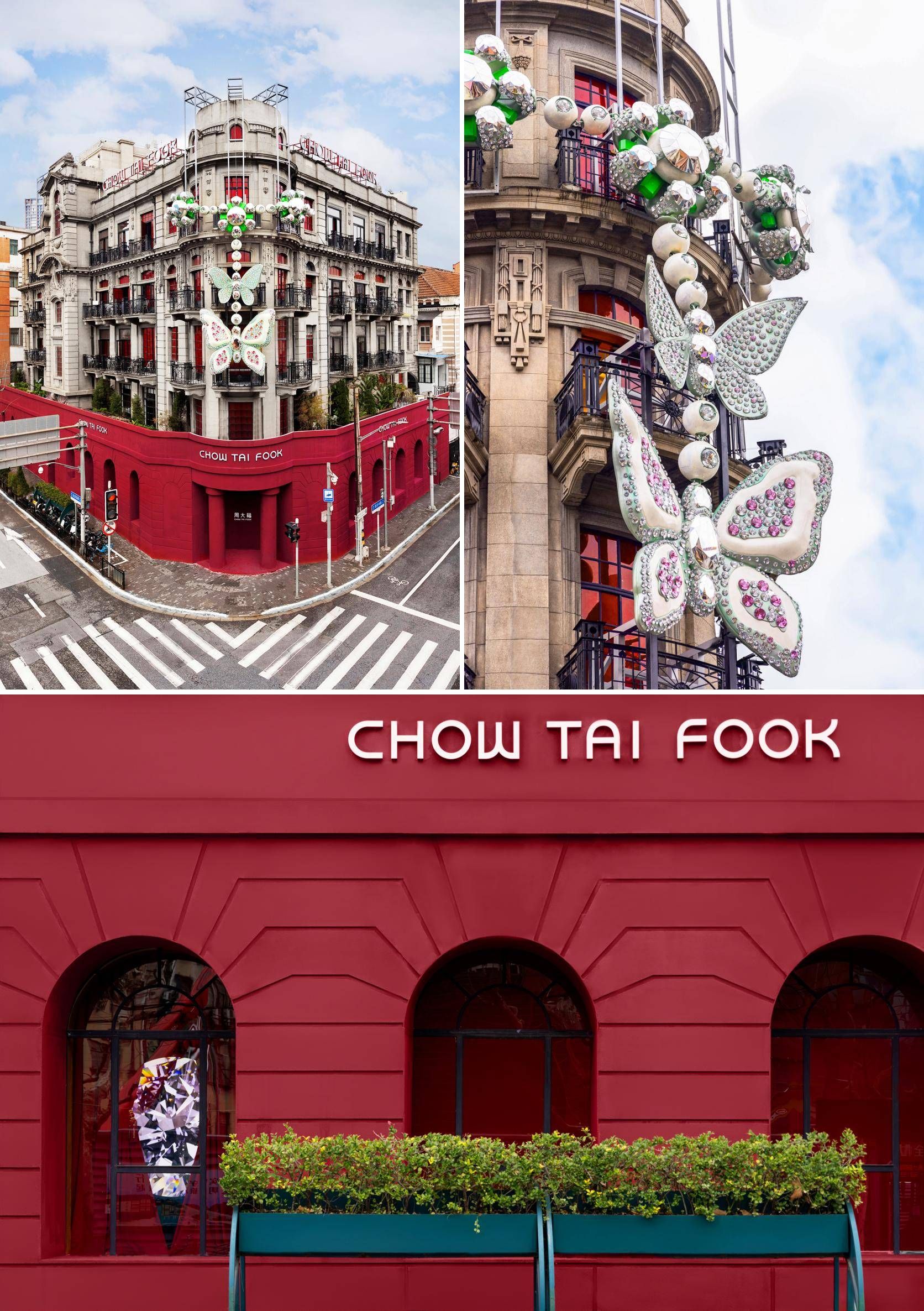 此次展覽期間,周大福以一抹紅色點亮了沙美大樓,品牌的標志性顏色為這幢古典建筑注入了煥然一新的獨特意趣。于大樓的中心,停駐了一大一小兩只剔透晶瑩的巨型蝴蝶,靈感源于周大福的傳世作品「裕世鉆芳華」中翩躚靈動的蝴蝶形象,仿佛為沙美大樓戴上了這一瑰麗絕倫的珍寶。摩登意象與外灘風(fēng)貌,歷史建筑與百年品牌,這場“超越時光”的臻美之旅在古今美學(xué)與文化記憶的交相輝映中正式拉開了序幕。