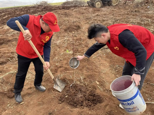 志愿者與村民們一起種樹