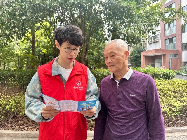 圖為志愿者向老人宣傳反詐知識