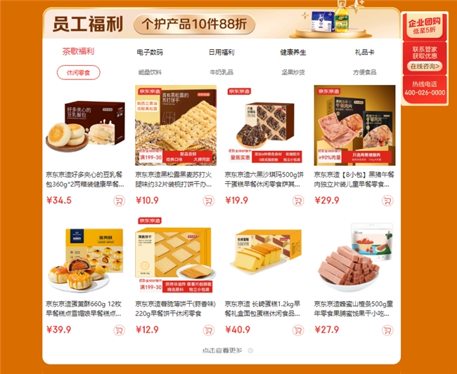 隨著企業(yè)經(jīng)營管理的精細化發(fā)展以及人才對于企業(yè)創(chuàng)新發(fā)展的價值凸顯,企業(yè)對市場營銷及員工福利物資的個性化、場景化需求越發(fā)強烈。在員工福利專區(qū),京東企業(yè)購集結(jié)了包括茶歇福利、電子數(shù)碼、日用福利、健康養(yǎng)生等多品類實物商品以及京東E卡等虛擬商品,大大增加了企業(yè)的福利選擇空間與自由度。
