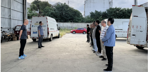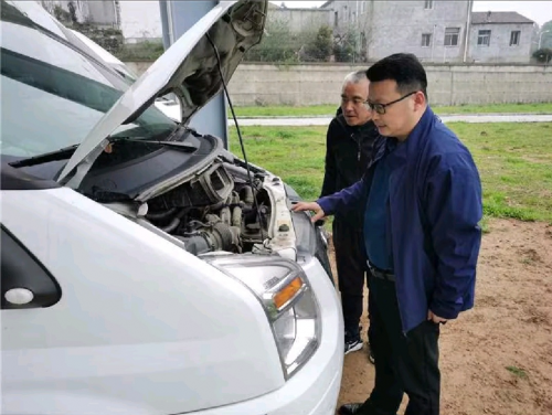 圖為分管領(lǐng)導(dǎo)對(duì)車輛狀況進(jìn)行檢查