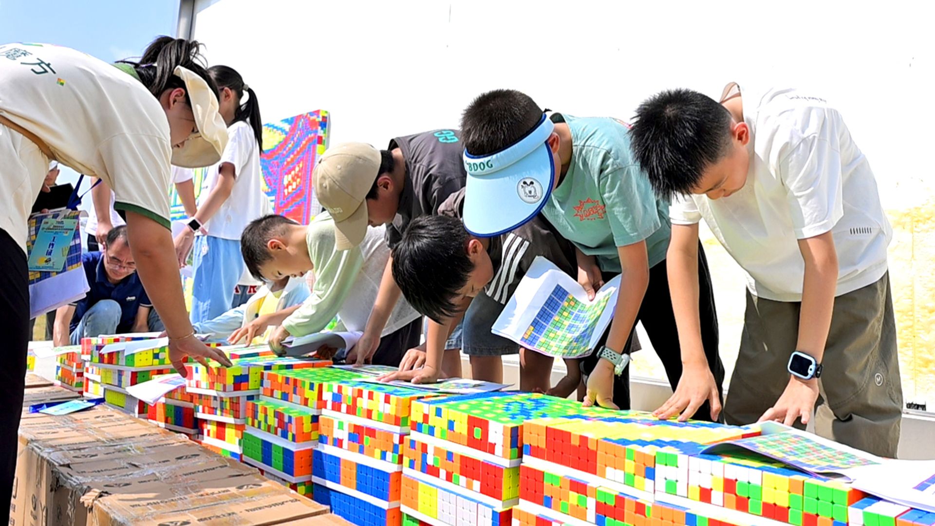 值得一提的是,魔方積木墻所用魔方及積木全部產(chǎn)自被譽(yù)為“中國(guó)玩具禮品之都”的汕頭澄海?;顒?dòng)前期公開(kāi)募集近300名魔方愛(ài)好者在汕頭、澄海、揭陽(yáng)、潮州四個(gè)基地完成共109000個(gè)魔方的拼圖挑戰(zhàn),奧運(yùn)跳水冠軍謝思埸也參與其中與“小魔友”一起拼圖。