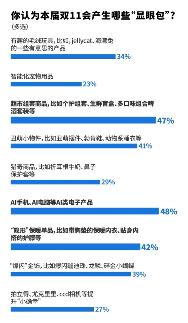 超九成消費(fèi)者有明確購(gòu)物意向 AI產(chǎn)品、超市盲盒成為雙十一“顯眼包”