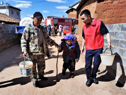 “婆婆,我?guī)湍阉偷郊野??!薄爸x謝你呀,小伙子。”在板橋鎮(zhèn)石缸村遭受旱情困擾、急需水源的艱難時(shí)刻,宣威復(fù)烤廠送去16噸生活用水,解燃眉之急。其間,李旭身穿紅馬甲、頂著炎炎烈日,一邊維持接水秩序,一邊幫助群眾取水,看到有行動不便的老人便主動上前,將沉重的水桶穩(wěn)穩(wěn)地送到老人的家中。汗水浸透衣裳,他卻舍不得停下腳步,只希望早一秒將水送到農(nóng)戶家,早一點(diǎn)緩解燃眉之急。