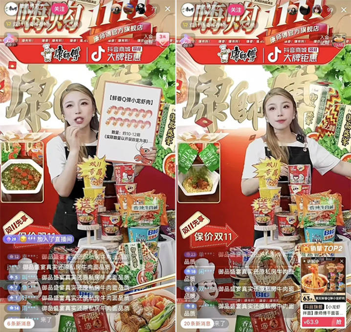 據(jù)Morketing的觀察,自8月17日康師傅小龍蝦拌面在抖音電商平臺(tái)首發(fā)以來,就迅速掀起搶購熱潮。消費(fèi)者在抖音、小紅書等社交平臺(tái)上頻頻表示“美味好吃”“真材實(shí)料龍蝦肉”,更是吐槽“銷售太火爆”,甚至感嘆“泡面都得蹲點(diǎn)直播間搶”。第二波上線后再次速速售罄,如今第三波上線,小龍蝦拌面已穩(wěn)居抖音官方旗艦店銷量榜Top 2。