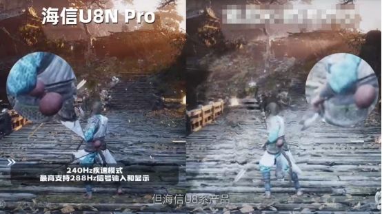 視頻評測屏幕時,強光下的海信電視U8黑曜屏Pro,并未出現(xiàn)預想中的反光和閃爍,屏幕前走動也沒有人影晃動;在沙發(fā)上或躺或坐,無論側(cè)面正面,屏幕色彩和亮度沒有明顯偏差,光色始終一致;配合240Hz疾速模式,最高支持288Hz信號輸入和顯示,玩《黑神話:悟空》時操作更流暢絲滑,戰(zhàn)力水平直線提升。