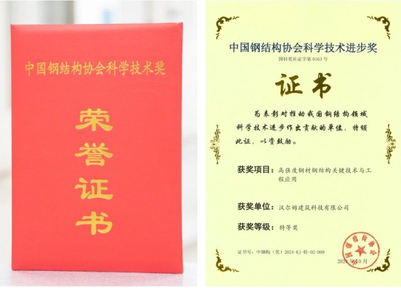 漢爾姆建筑科技有限公司與清華大學(xué)等共同完成的《高強(qiáng)度鋼材鋼結(jié)構(gòu)關(guān)鍵技術(shù)與工程應(yīng)用》榮獲“2024年度中國(guó)鋼結(jié)構(gòu)協(xié)會(huì)科學(xué)技術(shù)進(jìn)步獎(jiǎng)特等獎(jiǎng)”。