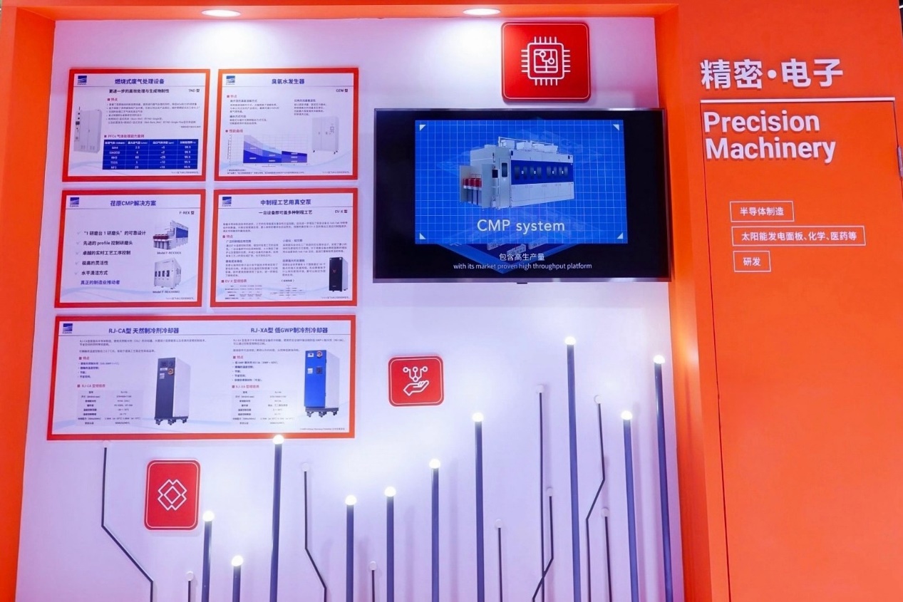 在精密·電子展區(qū),荏原隆重推出了一系列尖端產(chǎn)品,包括最新的F-REX型CMP(化學(xué)機(jī)械拋光)設(shè)備、EV-X型中制程工藝用干式真空泵、TND型燃燒式廢氣處理設(shè)備、OZW型臭氧水發(fā)生器、以及半導(dǎo)體制造用冷卻器等。