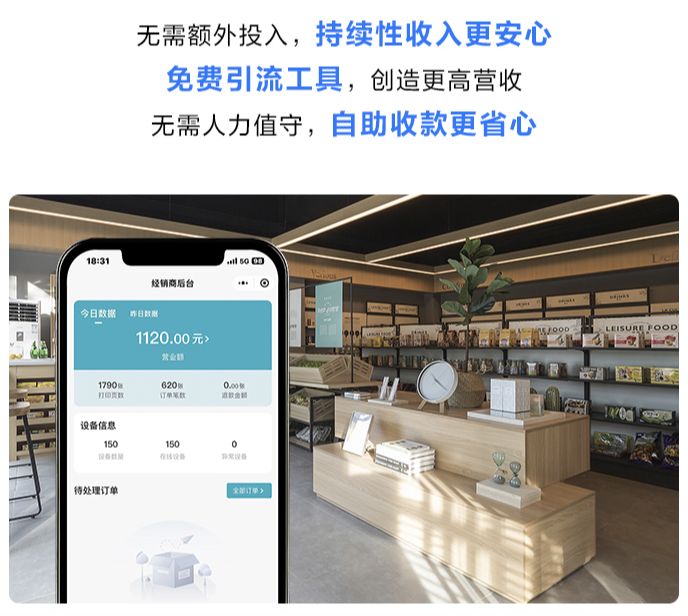 面向零售終端門店“愛(ài)蘿卜便民打印服務(wù)”*為其提供小程序*支持,門店承接業(yè)務(wù)無(wú)需投入成本即可啟動(dòng)打印點(diǎn)入網(wǎng),秒速開(kāi)啟打印生意。門店老板在這套體系中可以說(shuō)真正獲得了“零本萬(wàn)利”的生意機(jī)會(huì),共享打印服務(wù)不僅帶來(lái)額外的流量,為門店創(chuàng)造更高營(yíng)收,加上用戶全程自助操作,門店無(wú)需安排額外人力值守,高效又安心。
