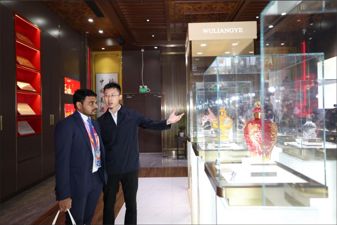 在國家會(huì)展中心(上海),五糧液文化體驗(yàn)中心以“五糧液與進(jìn)博會(huì)合作之緣”為設(shè)計(jì)理念,多維度呈現(xiàn)五糧液與進(jìn)博會(huì)的和美佳話,生動(dòng)詮釋了五糧液的巴蜀文化底蘊(yùn)、匠心品質(zhì)傳承和豐富產(chǎn)品體系,吸引中外來賓駐足觀賞。