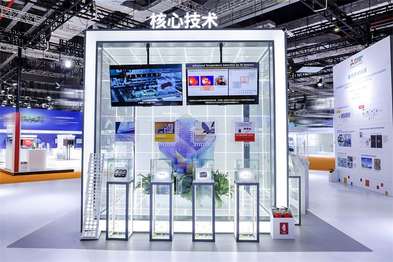該區(qū)域集中展示了三菱電機自主研發(fā)的半導體功率器件和紅外傳感器產(chǎn)品。其中包括包括使變頻家電更為高效節(jié)能的家電用SLIMDIPTM及超小型DIPIPMTM;應用于軌道牽引、電力傳輸和高可靠性變流器等的X系列HVIGBT;助力新能源汽車行業(yè)、采用緊湊型封裝的IGBT模塊的電動汽車用J1系列EV-PM。熱敏二極管紅外傳感器MelDIR采用高精度的熱成像分辨率,實現(xiàn)對人和物體的準確識別,并監(jiān)控畫面中人物的行為。