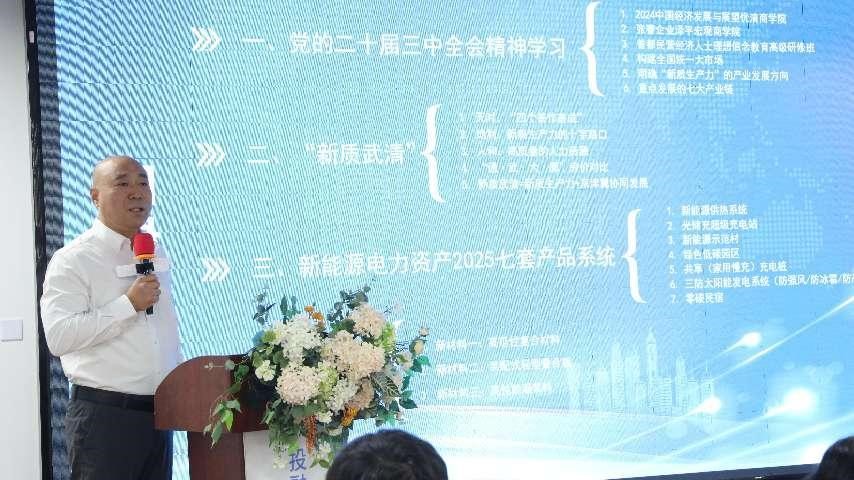 天津OTC副總經(jīng)理何亮、武清開發(fā)區(qū)黨委副書記趙品江、武清區(qū)工商聯(lián)三級調(diào)研員安有霞相繼登臺致辭。他們的講話充滿了對新能源產(chǎn)業(yè)未來發(fā)展的殷切期望。何亮副總經(jīng)理從資本市場的角度,強(qiáng)調(diào)了金融支持對新能源企業(yè)發(fā)展的重要作用;趙品江副書記則深入剖析了開發(fā)區(qū)在推動新能源產(chǎn)業(yè)集聚和創(chuàng)新方面的獨(dú)特優(yōu)勢;于永勝書記從工商聯(lián)的視角,闡述了民營企業(yè)在綠色低碳轉(zhuǎn)型中的關(guān)鍵角色。三位領(lǐng)導(dǎo)的一致強(qiáng)調(diào)了新能源產(chǎn)業(yè)在推動區(qū)域經(jīng)濟(jì)綠色低碳轉(zhuǎn)型中的核心地位,并對本次活動的成功舉辦表達(dá)了熱烈祝賀。他們的講話不僅為活動增添了深度和廣度,也進(jìn)一步堅(jiān)定了與會者對新能源產(chǎn)業(yè)未來發(fā)展的信心與決心。