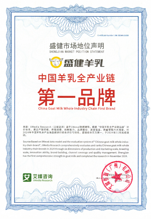 近日,盛健羊乳獲全球新經(jīng)濟(jì)產(chǎn)業(yè)第三方數(shù)據(jù)挖掘和分析機(jī)構(gòu)iiMedia Research(艾媒咨詢)授予的“中國羊乳全產(chǎn)業(yè)鏈第一品牌”市場地位確認(rèn),盛健羊乳全產(chǎn)業(yè)鏈條打造“健康國奶”!