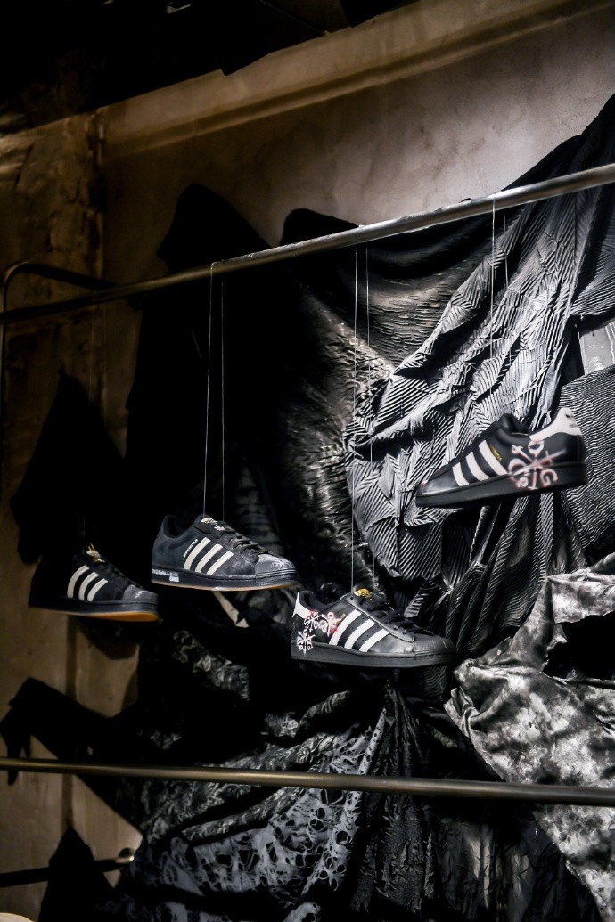 作為運動潮流的領航者,阿迪達斯始終致力于將經(jīng)典與現(xiàn)代、傳統(tǒng)與創(chuàng)新巧妙結(jié)合,為全球消費者帶來前所未有的時尚體驗?!昂谏悮ゎ^派對”正是這一理念的完美詮釋。所有嘉賓均穿著阿迪達斯Superstar系列,以全黑造型出席。當貝殼頭與暗黑美學碰撞,經(jīng)典鞋款的全新可能便以一種不同的方式被展現(xiàn)。經(jīng)過一系列精心設計,阿迪達斯Superstar系列的時尚元素與ONEGALLERY CAVE獨有的藝術氛圍實現(xiàn)融合,將活動現(xiàn)場打造為一個既復古又前衛(wèi)的潮流空間。