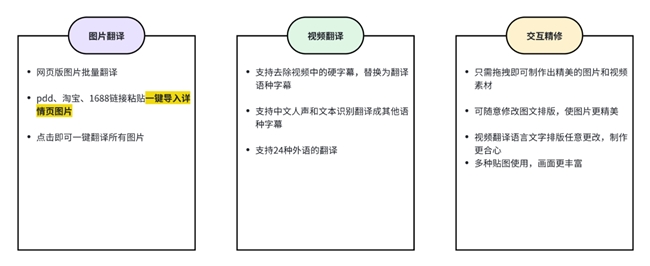 好的素材制作需要視頻文案的翻譯和展示,這是非常耗時的,如果能夠?qū)⒁曨l和圖片一鍵翻譯,將大大提高制作素材的效率,魯班跨境通攜手佳同跨境幫助跨境賣家快速產(chǎn)出優(yōu)質(zhì)素材,為廣大跨境賣家提供爭搶市場的一大利器。