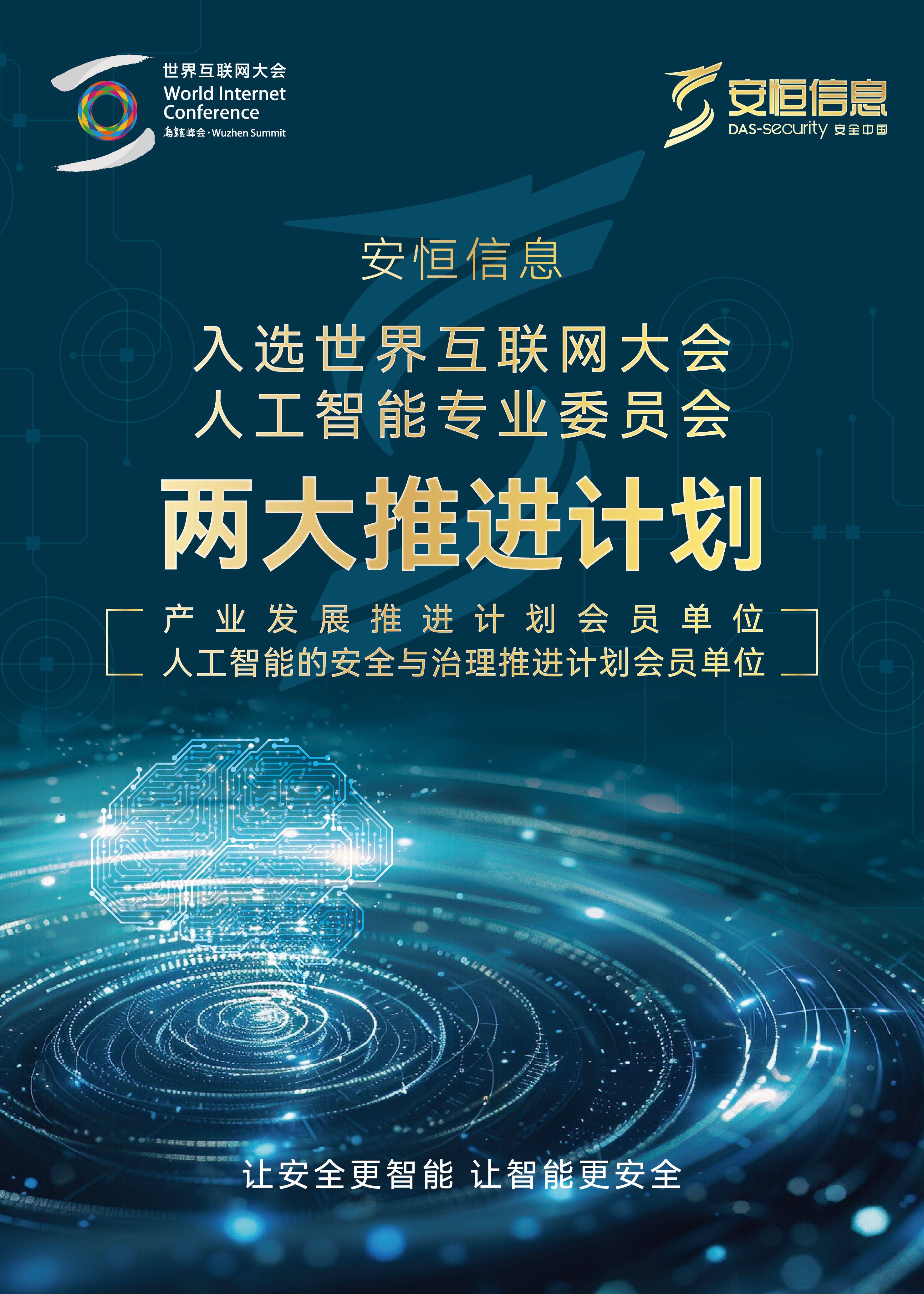 11月20日,世界互聯(lián)網(wǎng)大會設(shè)立的首個專業(yè)性、常態(tài)化分支機構(gòu)-世界互聯(lián)網(wǎng)大會人工智能專業(yè)委員會正式成立,安恒信息研究院院長、高級副總裁王欣入選“產(chǎn)業(yè)發(fā)展推進計劃會員單位”“人工智能的安全與治理推進計劃會員單位”兩大推進計劃。