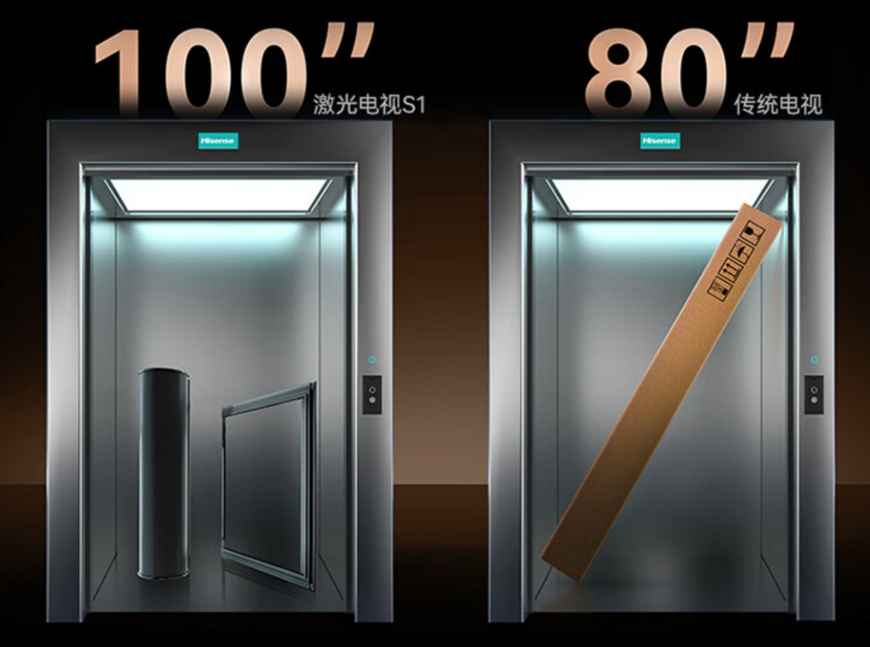 選購百吋電視面臨的第一個問題就是入戶難,激光電視的可折疊屏則是一個不錯的解決方案。比如2024年熱銷的海信激光電視星光S1 100英寸采用的就是可折疊的屏幕框架和膜片,輕輕松松入電梯,安裝和調(diào)試僅需30分鐘左右就能完成,并且它的屏幕重量僅為18Kg,上墻完全沒有問題,2cm的超薄厚度還能和墻面實現(xiàn)無縫貼合,大大降低了百吋電視的入戶和安裝門檻。