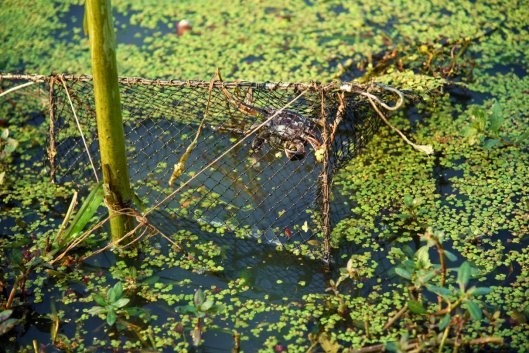 (圖為志愿者在湖中幫忙捕撈螃蟹)