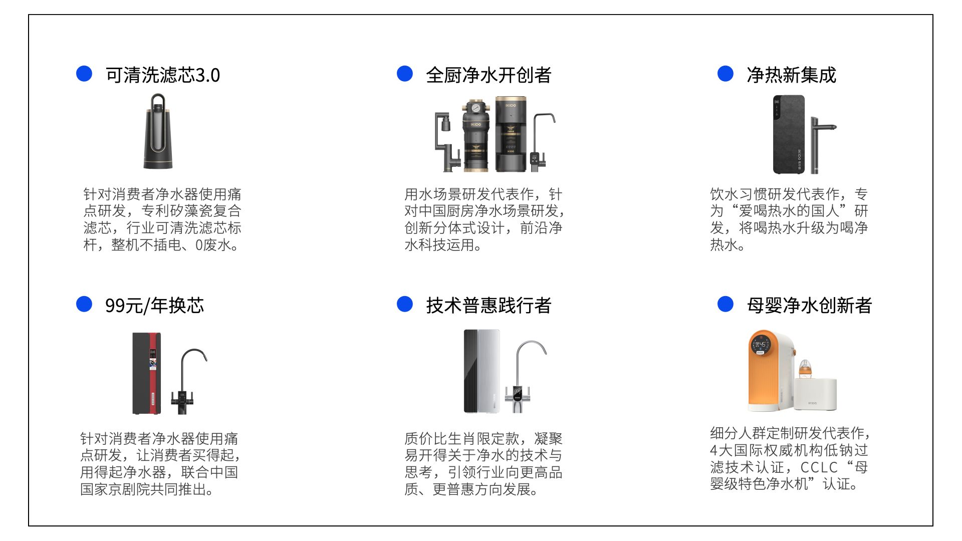 隨后,易開得將創(chuàng)新、突破、顛覆等“行業(yè)鯰魚精神”鐫刻在發(fā)展的每一步中,在凈水行業(yè)特例獨行,成為獨樹一幟的存在,尤其是集團化發(fā)展后的易開得,將重心向更能滿足消費者需求、突破行業(yè)發(fā)展桎梏的技術和產(chǎn)品上傾斜,做出了眾多極具獨特性、領先性、顛覆性的有效嘗試: