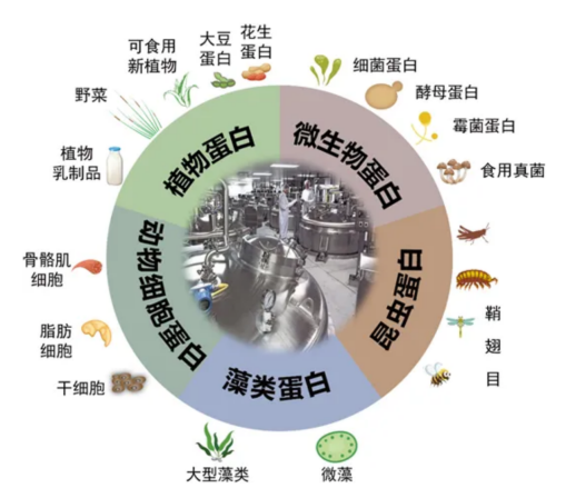 政策東風勁吹,微生物蛋白迎來了前所未有的發(fā)展機遇。替代蛋白根據(jù)制造原料的來源,可以分為四大類別:微生物蛋白、昆蟲蛋白、細胞蛋白和植物蛋白,其中微生物蛋白是指利用細菌、酵母、微藻等微生物,將葡萄糖、淀粉、農(nóng)業(yè)廢料、二氧化碳等轉化為蛋白質。